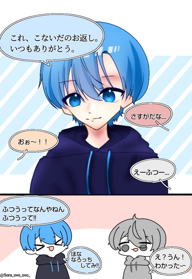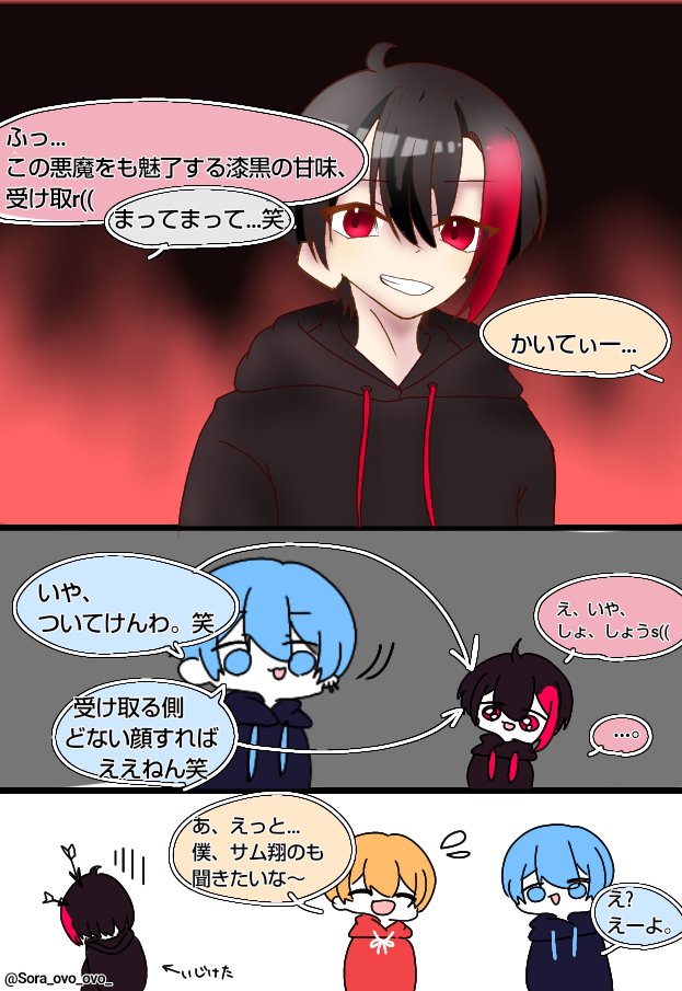 #チョコ貰えたかなwリレー 上記タグからほんとに素敵なイラストが見られるので是非…!!✨ 3/8担当のそらもです! 4人がリスナーへのお返しの練習をしている所を描きました!(期待を込めつつ) タップ推奨です! #不透明なイラスト #KAITOストーリー #さむらいらすと #なろあーと