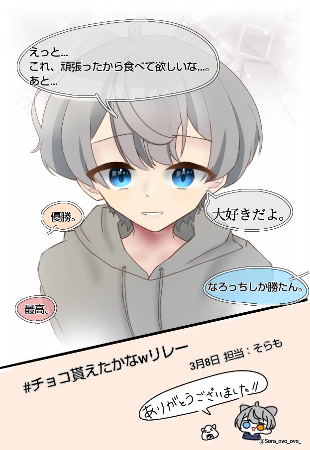 #チョコ貰えたかなwリレー 2/21担当のなっちゃんコーラです! 上のタグから素敵なイラスト沢山見られますので是非! こーくさんにチョコ貰えた役をあげたので、動画毎秒投稿お願いしますね😄😄😄 #不透明なイラスト #なろあーと #KAITOストーリー #さむらいらすと イラストだけの差分は下に!