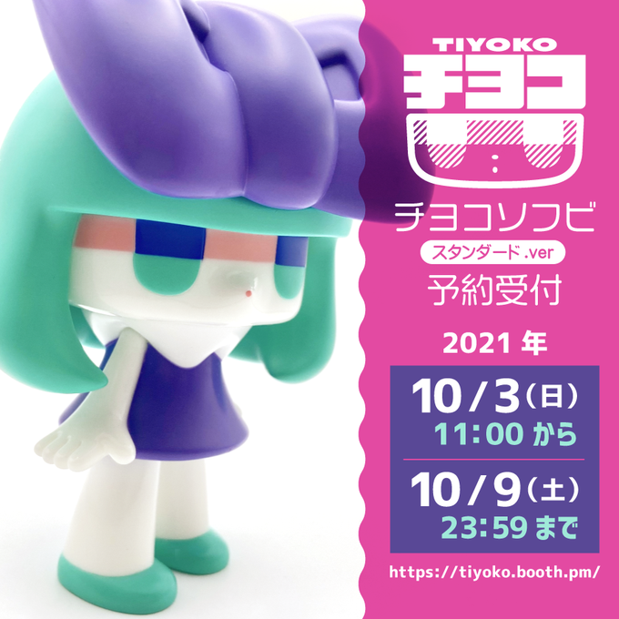 今夜、21時頃から下記のURLにて 「チヨコソフビ」スタンダードカラーの注文を受け付けます~! 発送は9月以降を予定しています。 必ず手に入る機会ですので興味ある方はチェックしてもらえると嬉しいです! tiyoko.booth.pm/items/4028616 #チヨコソフビ