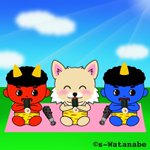 おはようございます✨ 今日は #節分 春の訪れですね🌸 チワワちゃんは仲良く北北西を向いて #恵方巻き ふを食べてます💕 笑顔いっぱいの一日を😊 今日もよろしくお願いします🎶 #みんなで楽しむTwitter展覧会 #characterdesign #チワワ #ゆるキャラ #イラスト #キャラクター
