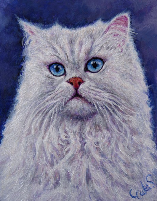 #猫絵 🐈🖼新作です “Fluffy Silver” (木製パネルにアクリル絵具、F0) モデルは #チンチラペルシャ の男の子😻白銀色に輝く不思議な生き物😅 #絵描きさんと繋がりたい #猫好きさんと繋がりたい #アナログ絵 #アクリル画