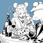 「ところで、お時間があるようでしたら、こちらのチーズを使ってお料理してゆかれませんか?ウィームの大牛乳商人一族の方から献上された新作チーズなのです」 「牛乳商人?……ああ、二代目のあいつか」 「お知り合いでした?」 「以前、会報n…」 #とあるあわいのくすまも #イラスト #チーズの日