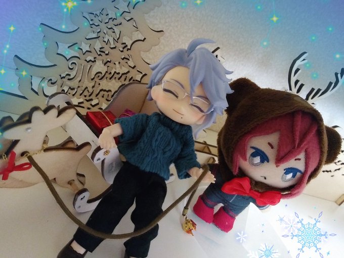 Merry Christmas & Happy New year‼︎🎄🐯❄️✨✨✨ いちこみるくからのクリスマスカードです🍓🍼💕 #いちみるドレス #ツイステぬい撮り部 #twstぬいちゃんクリスマス大パーティー 素敵タグお借りしました🥰