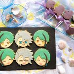 🐚リトルツインウツボ アイシングクッキー🐚 キキが背負っているのは星だけど、フロちゃんが背負っているのはヒトデです⭐🤭 シュガーペーストでできた貝殻とキャンディでできたシーグラス。全部食べられます😊✨ #ツイステ製菓部 #ツイステファンアート #アイシングクッキー