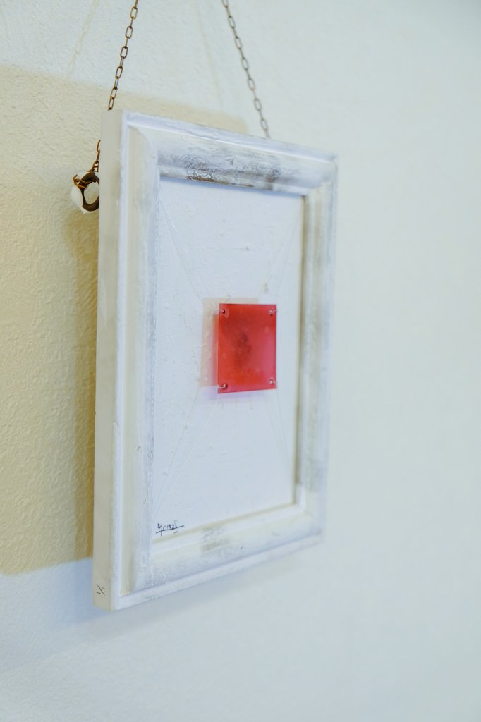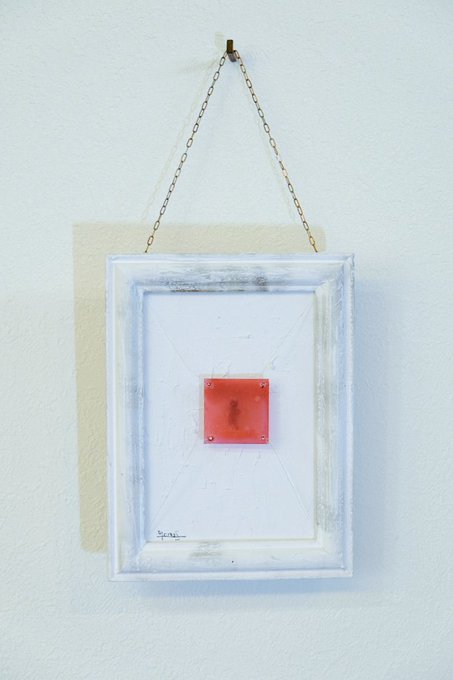 「忘れないための額縁」 11作品目。 ヨロズ少年が幼少期に捕獲&引出しに封印してた蜂が赤い樹脂プレートに隠されてます。🐝 買ってください。 #よろずアート #夏の創作クラスタフォロー祭り #芸術同盟 #芸術の輪 #美術ネットワーク #私の作品もっと沢山の人に広がれ祭り #ツイッター創作発表展