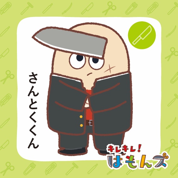 改めてはもんズたちをご紹介✨🔪 三徳包丁のさんとくくん なんでも切れる無敵さんとくくんは、やや尖った性格。 日課は自慢のリーゼントを磨くこと。 #はもんズ #ゆるキャラ #オリジナルキャラクター #刃物 #ゆるいイラスト #イラスト #ツイッター始めました