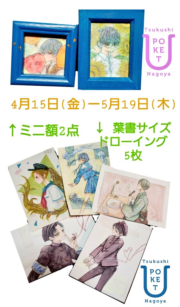 #ツクポケ販売作品 4/15~5/19/望森ゆき 画像①枚目:旧作ドローイング作品、各5,000円 画像②枚目:ポストカード、各180円 ↓通販 suzuri suzuri.jp/yuki_mochimori 愛知県の新守山駅近くにあるアピタ内の土筆ギャラリーさんの一角にて展示販売されます! よろしくお願い致します!