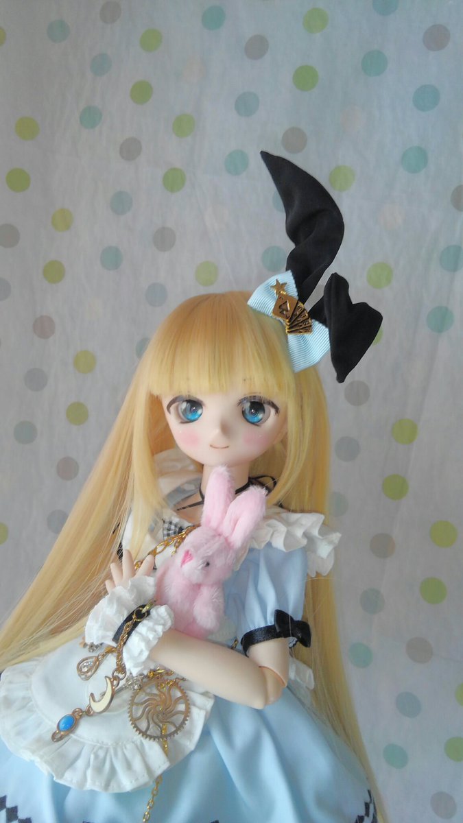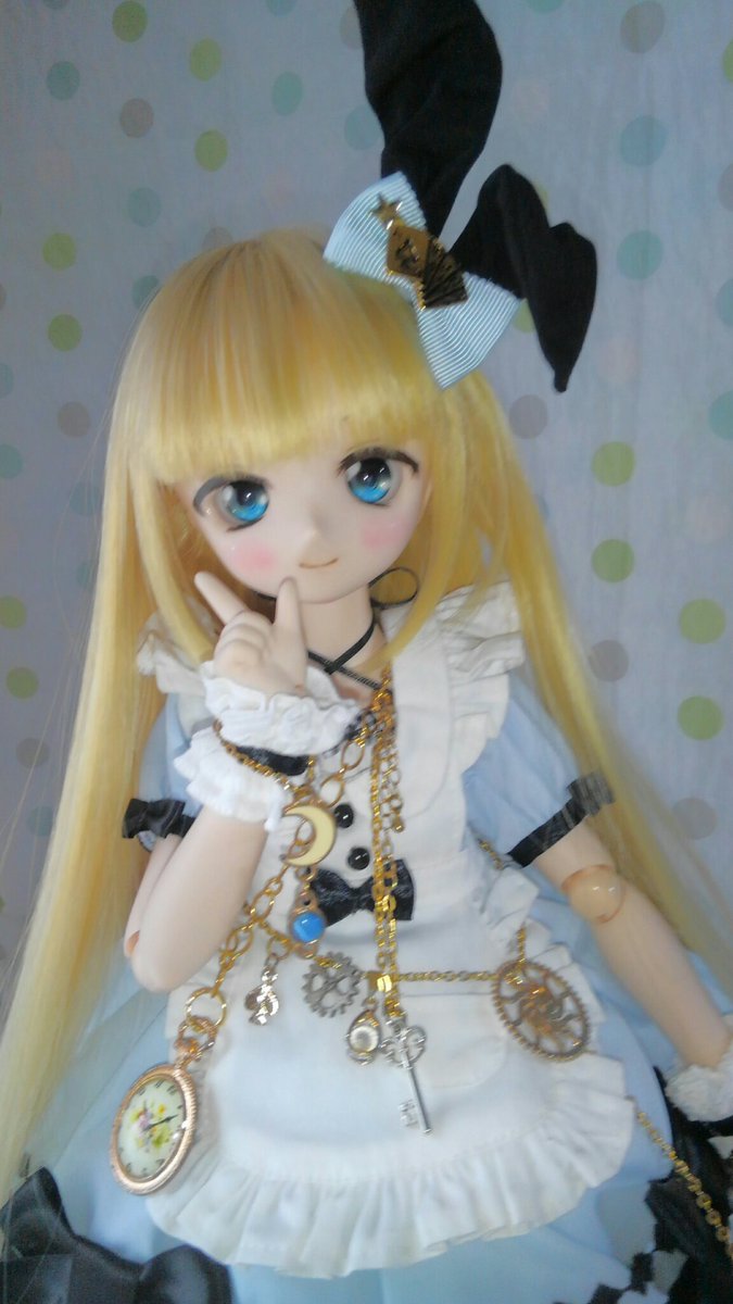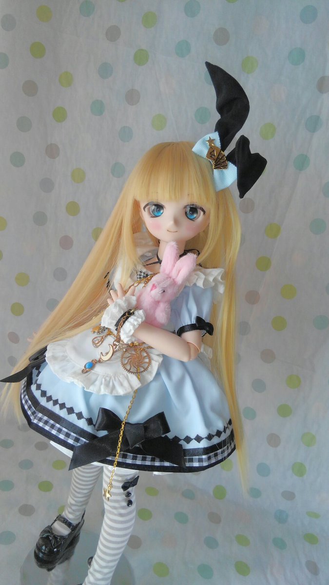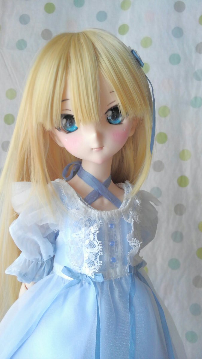 ちょっぴりイメチェン、前髪、ストレートだったのを分けました😊 よりアリス風に成ったでしょ? #ツチノコ_アリス #ミニドルフィードリーム #MDD #MDDはいいぞ #自作っコもかわいい #うちの子かわいい