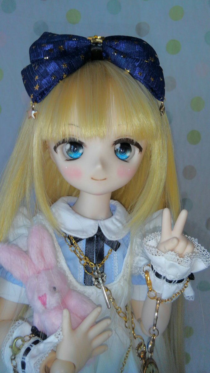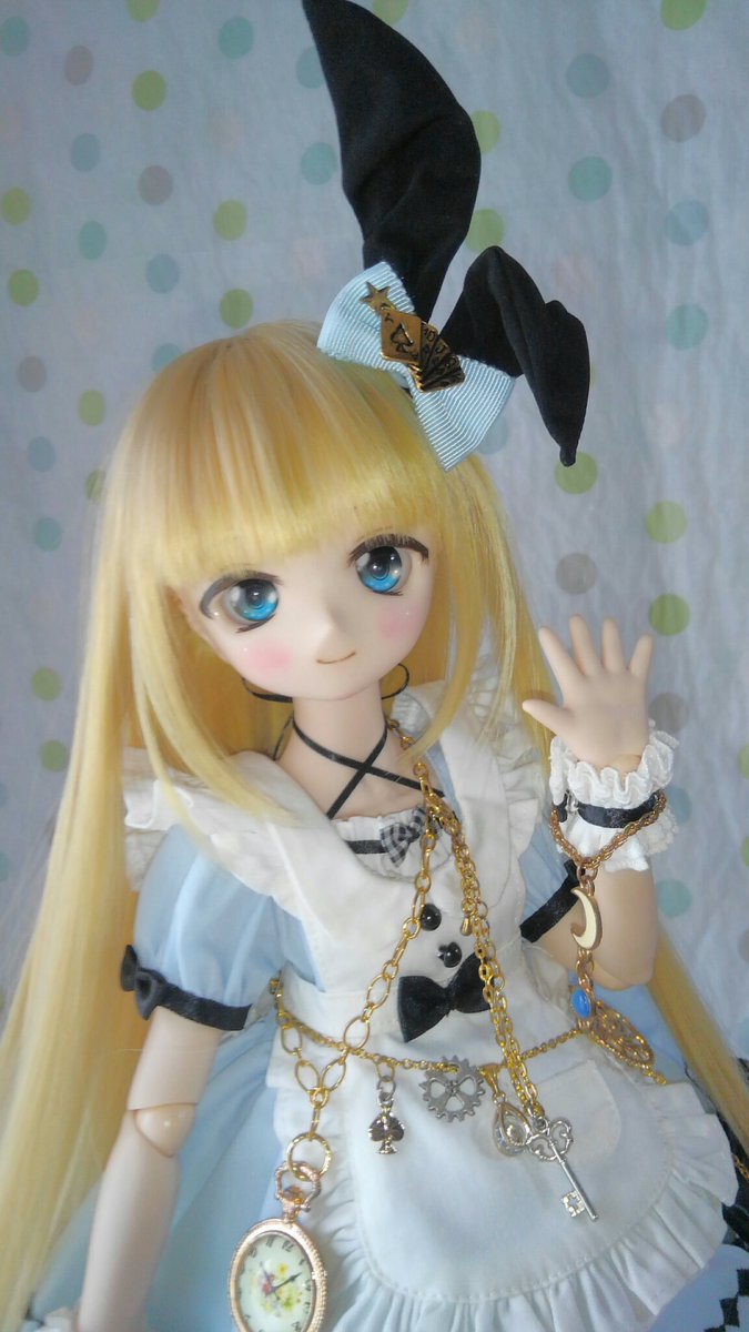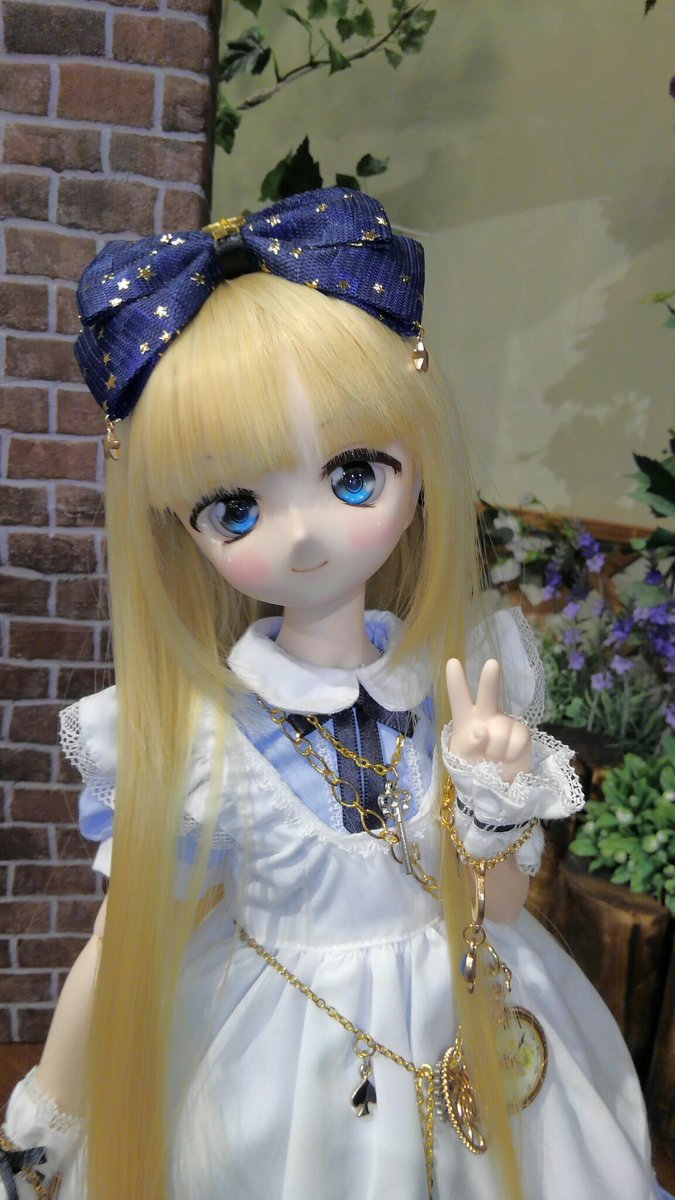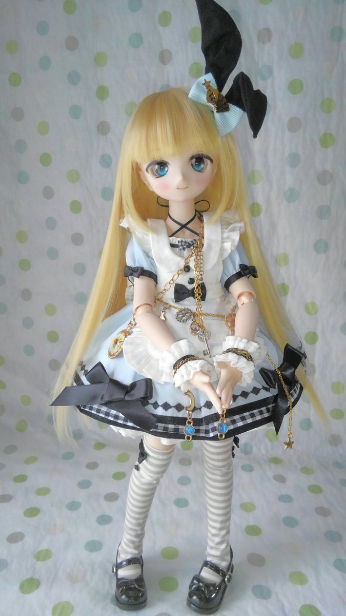 ちょっぴりイメチェン、前髪、ストレートだったのを分けました😊 よりアリス風に成ったでしょ? #ツチノコ_アリス #ミニドルフィードリーム #MDD #MDDはいいぞ #自作っコもかわいい #うちの子かわいい