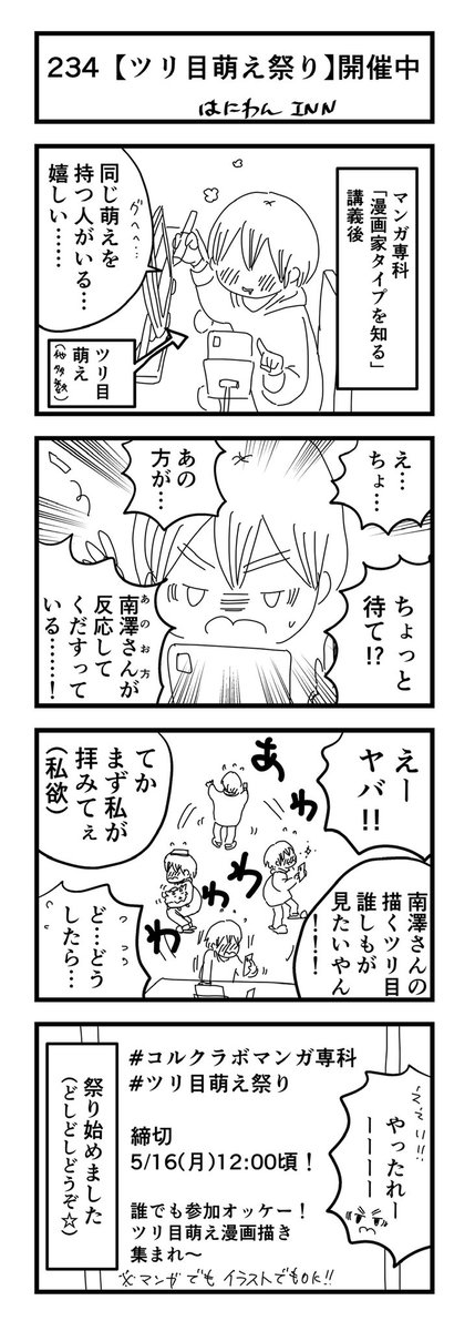 【ツリ目萌え祭り】開催中 ごめん…ワイの私欲が抑えきれんかった… 12日の講義で課題出るかもしれんし、 今のうちに描くのもアリです☆ どうぞお気軽に~!! #コルクラボマンガ専科 #6期 #漫画が読めるハッシュタグ #日記マンガ #ツリ目萌え祭り
