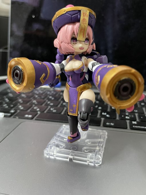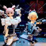 ポーズの自由度が増したおかげで、後ろ回し蹴りとかヒーロー着地風も出来たりします。 しかし太ももがニーソのラインで締められているのは整形の都合でしょうか、それとも作り手のこだわり?(^◇^;) #デスクトップアーミー #ティタニア