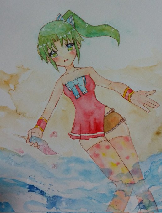 「海に来たよ?でもあなたがいない...」 3枚目から1枚目に戻る感じで。 ティナ大好きでケフティナ好きだしティナ総受です。 水着なのにニーソは泳ぎにくそう。 すみません趣味です。 #絵描きさんと繋がりたい #イラスト好きな人と繋がりたい #イラスト #FF6 #ティナ