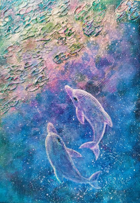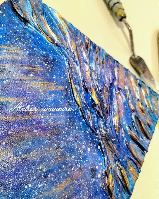 久しぶりにテクスチャーアートの新作できた^〜 結構ラメが可愛い感じなんだけど写真じゃ見えない〜! 一部蓄光塗料使ってて、強い光当てると光ります。カッコイイ! #SS1illust #テクスチャーアート