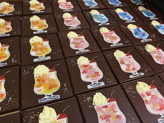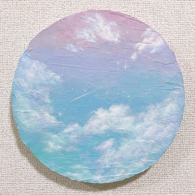 完成しました◎ 空が映るクリームソーダに雲のような立体的なクリームが浮かぶ作品です。 何枚かずつ描いてるのでデザフェスの在庫になります☁️ #アクリル画 #絵 #絵画 #絵描きさんと繋がりたい #テクスチャーアート #デザフェス58