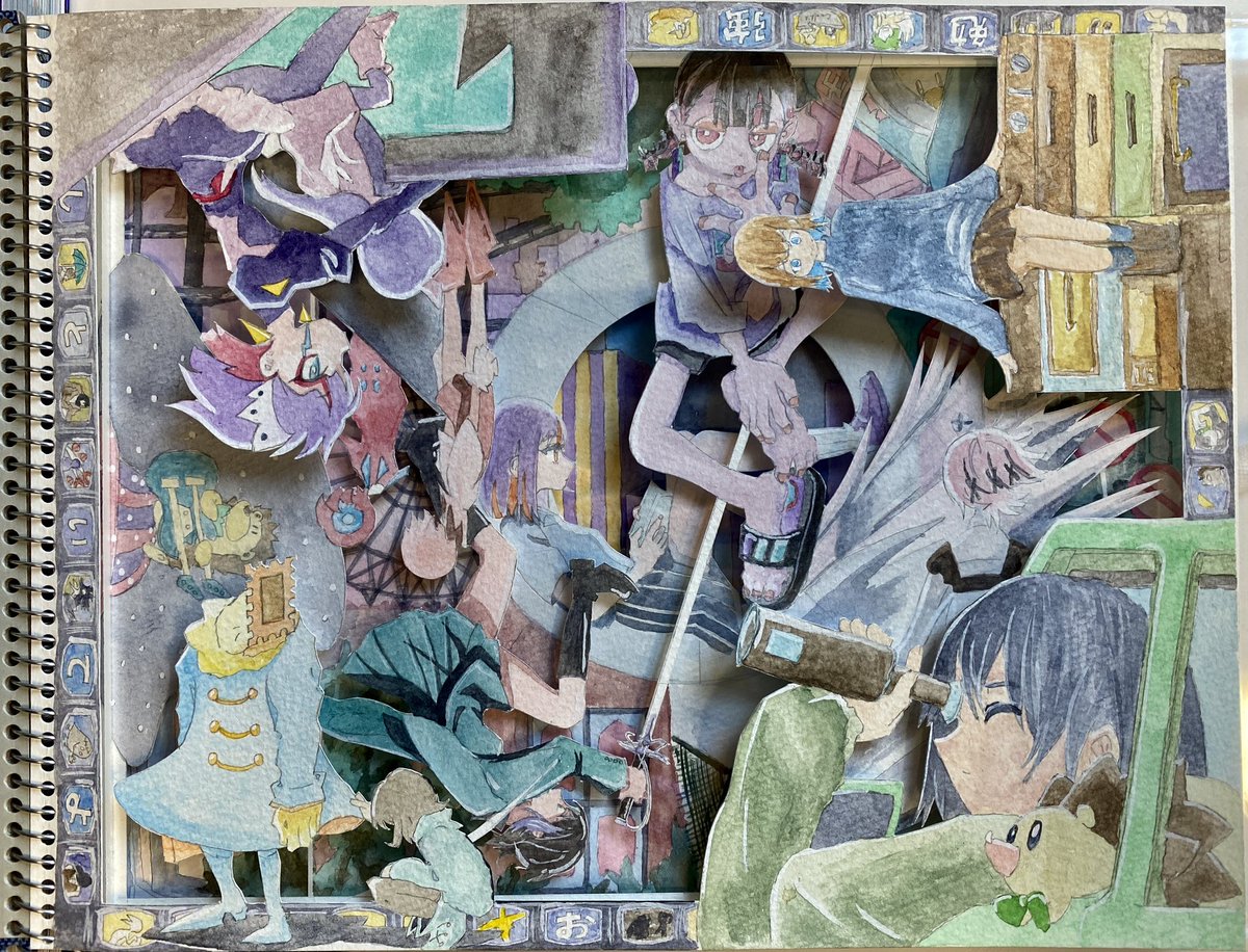 12/22 きたぜテクノプア🎮最終日〜! 千秋楽記念にファンアート🎨を描きました! 切り絵チョキチョキ✂️楽しいな〜。 なかなか絵を描く時間なんて取れないので全部まとめて描きました。 ライブ楽しみ〜👊 #ずとまよファンアート #ずっと真夜中でいいのに #テクノプア