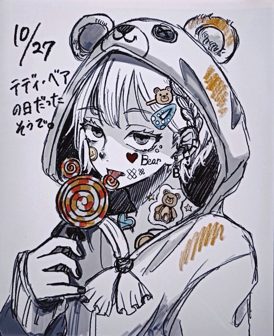 10月27日テディベアの日🐻名前の由来は🇺🇸の26代大統領から🇩🇪の会社がぬいぐるみを制作して🇬🇧のコレクターがテディベアデーを始めた…世界中で愛されているのが伝わりますね🤗 #絵描きさんと繋がりたい #イラスト好きな人と繋がりたい #創作イラスト #落書き #イラスト #今日は何の日 #テディベアの日