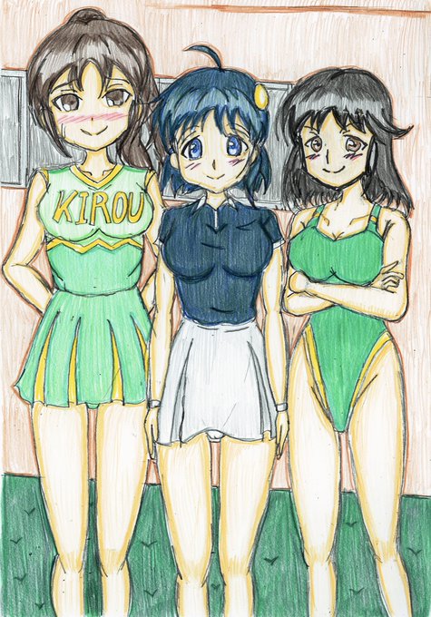 貴朗高校の主に活躍している部活動 #よその子 #描かせていただきました #うちの子 #むしろ描いてください #網米くりこ #マミ(のなりす) #黒木影美 #テニスウェア #チアガール #競泳水着 pixiv.net/artworks/96487…
