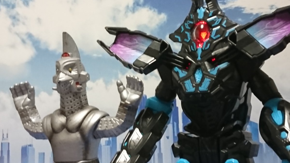 #夜のフィギュア撮影会 お題:パートナー 過去 デッカーの最強のパートナーになれる・・・そう信じてたのに・・・!!とんだ食わせ物だった!(アガムスが) #ウルトラマンデッカー #テラフェイザー #ちいさな巨大特撮
