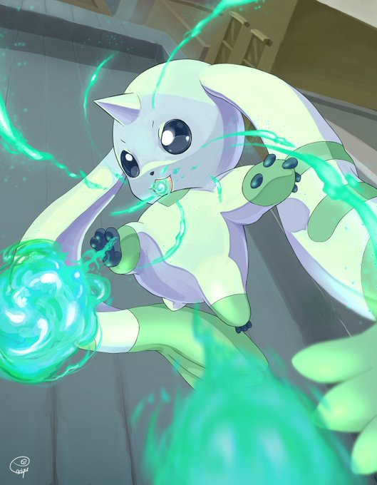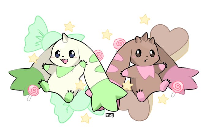 I just found out this drawing was done exactly one year ago! They're so cute! 💛💚 #Digimon #DigimonCyberSleuth #Terriermon #デジモン #テリアモン #digitalart #fanart #commissionsopen