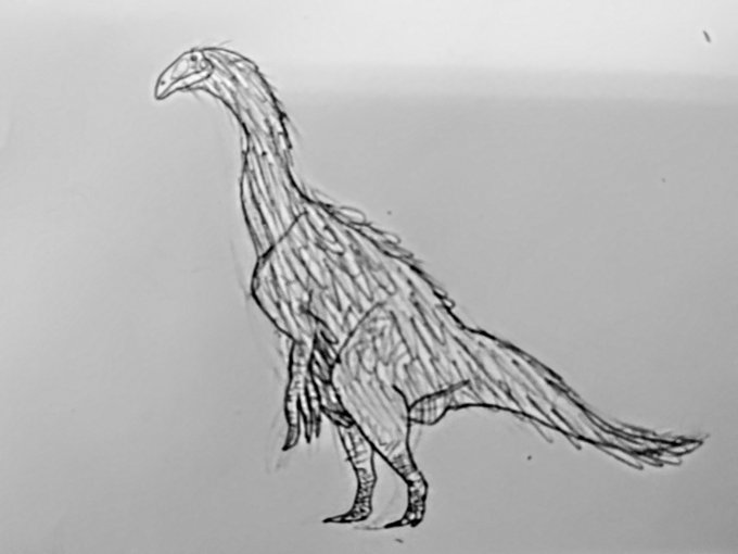 #blender で #テリジノサウルス 作りました! 肉食恐竜の仲間でこんな恐ろしい爪を持ってるにもかかわらず、植物を食べていたと考えられています。 #引用リツイートで褒められたい #b3d #blenderart #Therizinosaurus #恐竜 #dinosaur #paleoart #paleontology #バーチャル恐竜館