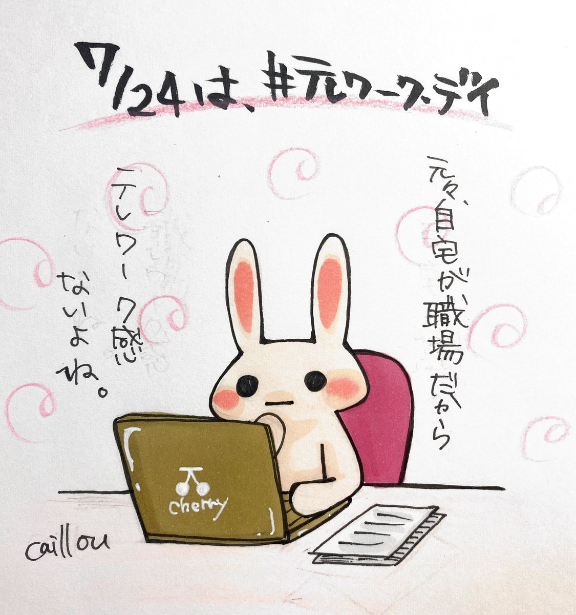 おはようございます😊 今日はテレワーク・デイ💻 東京オリンピック・パラリンピックの期間中、 各交通期間の混雑が予想されることから 働き方改革の一環として制定された記念日✨ 私には縁のない記念日だな🤭 今日もよろしくお願いします🙌 #イラスト #テレワーク・デイ #絵描きさんと繋がりたい