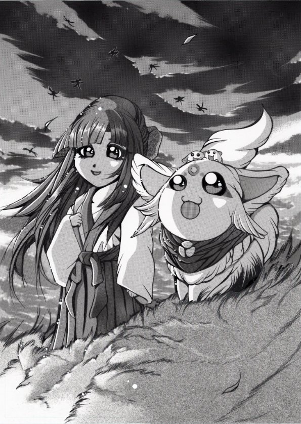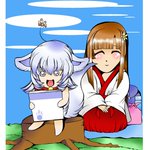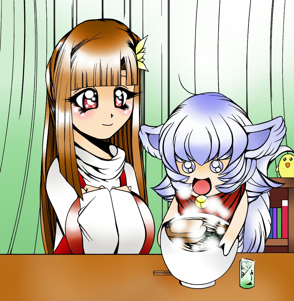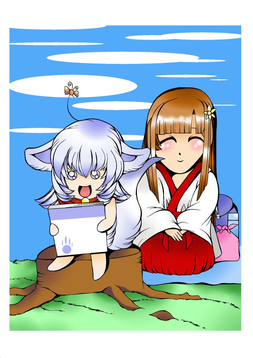 白狐のテンくん テンのお世話をしてくれている巫女見習いの日向ちゃんは、いつもテンのそばにいてくれて見守っていてくれます🤗 #テンくん #マスコットキャラクター #オリジナルキャラクター #ながおか史遊会 #イラスト