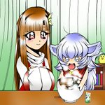 サイズ合わせました😊 白狐のテン 蒼狼のソウ 二人の名前をあわせると「蒼天」になります🙃二人は神様と祀られている大親友です🦊🐺 #テンくん #ながおか史遊会 #マスコットキャラクター #オリジナルキャラクター #イラスト