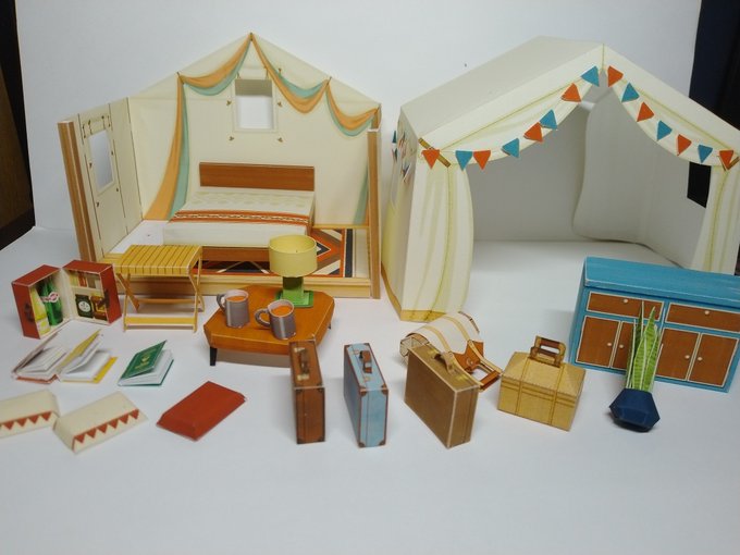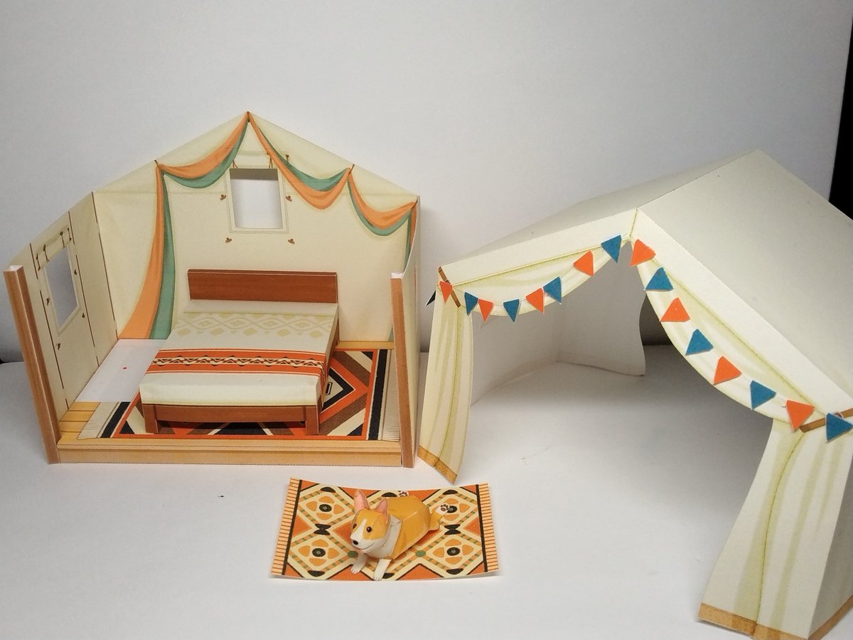 ミニチュアの世界(グランピング) 7ページ目の途中まで(全12ページ) ここから小物いっぱい #ペーパークラフト #Canon #CreativePark #おもちゃ #ミニチュア #キャンプ #テント #ウェルシュ・コーギー・ペンブローク #おしゃれ creativepark.canon/jp/contents/CN…