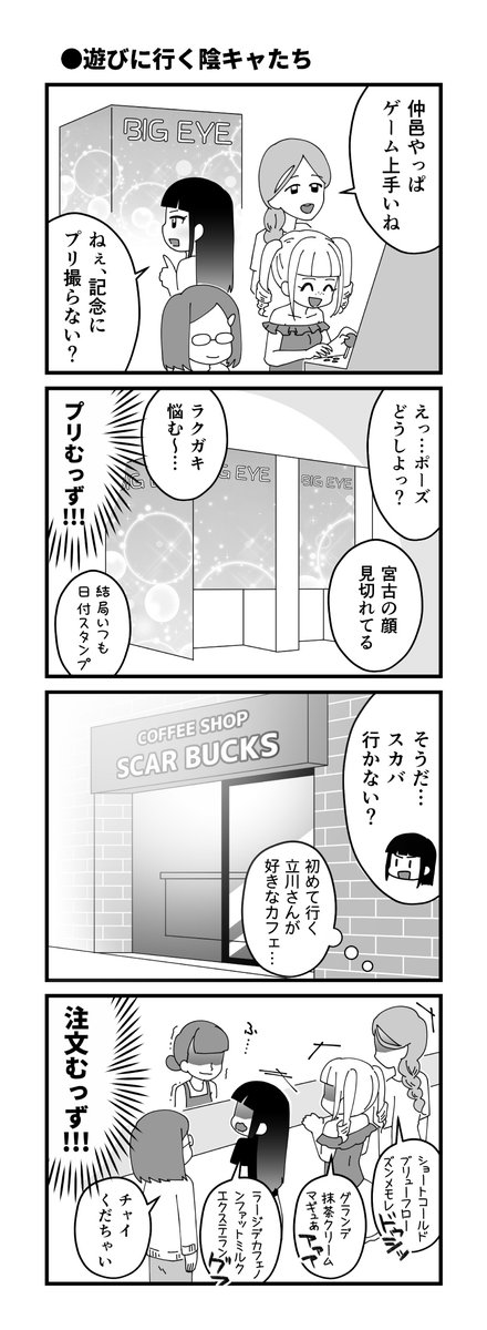 【テンプレ姉妹の日常】 遊びに行く陰キャたち プリクラもオシャレコーヒーショップも慣れてないと難易度高い… #漫画 #4コママンガ #漫画が読めるハッシュタグ #創作漫画 #みんなで楽しむTwitter展覧会 #テンプレ姉妹の日常