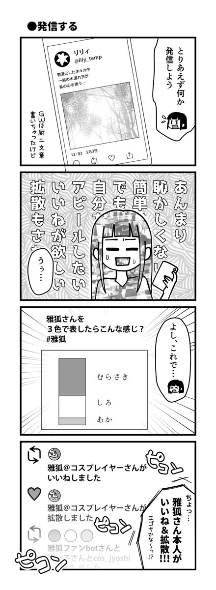 【テンプレ姉妹の日常】 『ファン第1号』 なんとなく「バズりたい」と思ってたけど、今まで行動できなかったユリ。千里の道も一歩から♪ #テンプレ姉妹の日常 #4コママンガ #創作漫画 #漫画が読めるハッシュタグ