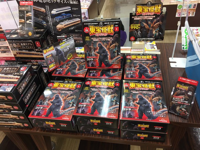 #夜のフィギュア撮影会 お題『パートナー』 パートナーを組んだキングギドラとメカゴジラが84ゴジラに挑む!← 1/700統一スケールで異色の組み合わせを再現してみた。50mのメカゴジラがめっちゃ小さい!😆 #東宝怪獣コレクション #ゴジラ #Godzilla #キングギドラ #メカゴジラ #デアゴスティーニ