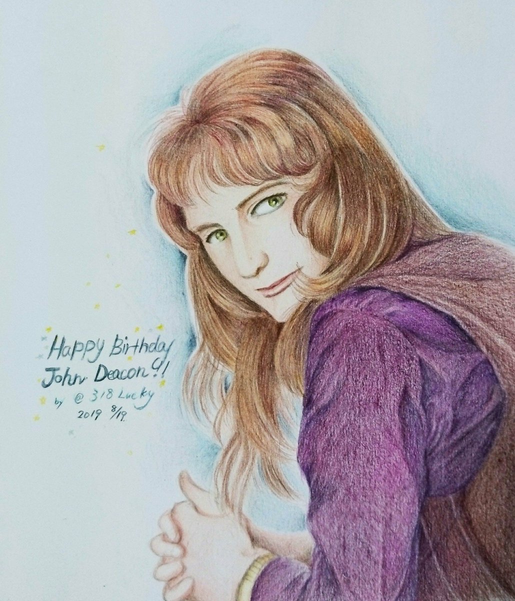 ディスカバークイーン聞いてたら つい、並べてみたくなりました 左はトレースなし、右はトレースして描きました 若ジョンは本当に描きがいがあります 😍✨✨ #色鉛筆画 #JohnDeacon #Queen #ディスカバークイーン