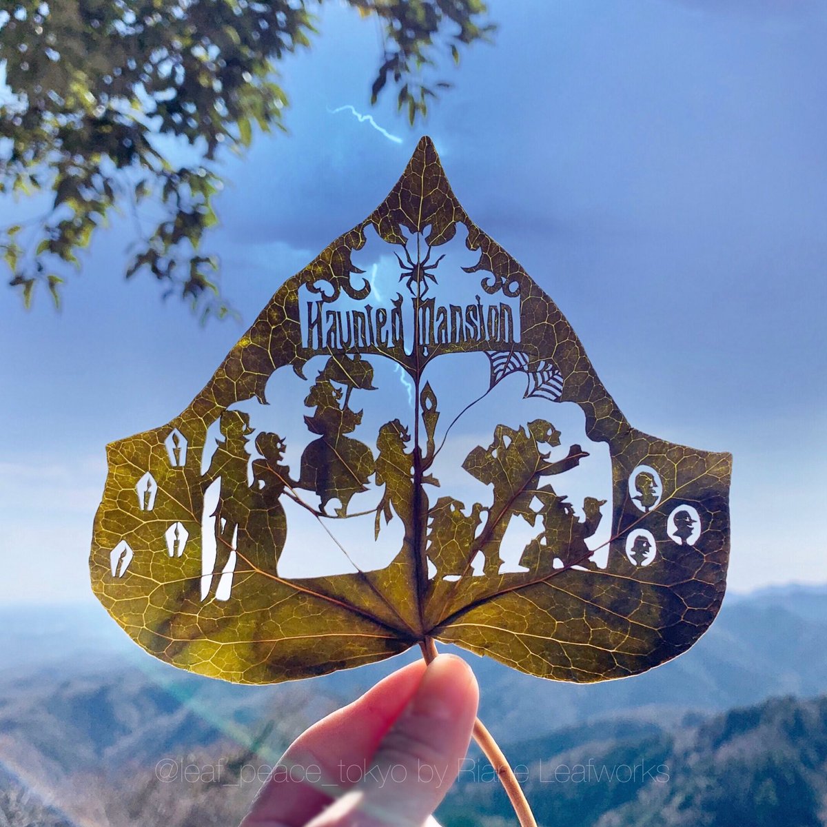 🔮 東京ディズニーランド「ホーンテッドマンション」をモチーフに葉っぱを切ってみました! #ホーンテッドマンションファンアート #ディズニーストーリービヨンド #東京ディズニーリゾート #tokyodisneyresort #hauntedmansion #disney りーあんの葉切り絵🌱
