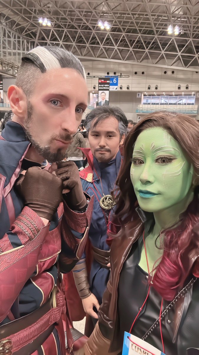 おがぉがさんが撮ってくれた盛れてるトリオ。😘💙❤️💚 ガモーラ:@Ogaoga_1121 ドクター:@daisuke2246 ディフェンダー:@fujimaccha4649 #東京コミコン #コスプレ #ガモーラ #ドクターストレンジ #ディフェンダーストレンジ