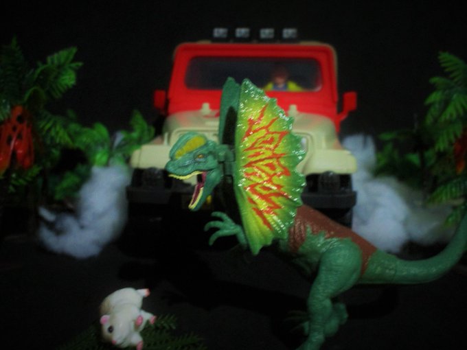 #夜のフィギュア撮影会 7/20テーマ「失態」(新規) 「これでボクのミスはチャラになる!…そして運命が変わるんだ!!」 #オモ写 #toyphotography #Mattel #マテル #ジュラシック・パーク #ネドリー #ディロフォサウルス