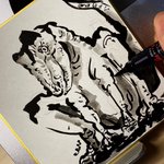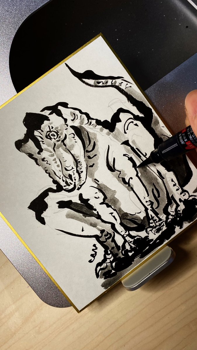 首の角度、ちょっと可愛くかけた😆 今日は創作空間caféアトリエ1周年やったのでスタッフ全員出動で盛り上げてくれました〜😍💓 なんといってもアトリエのメンバーが好き!めっちゃ幸せなことやな (絵と内容のギャップw) #1日1恐竜 #ディロフォサウルス #inktober2022day1 #1day1dinosaur