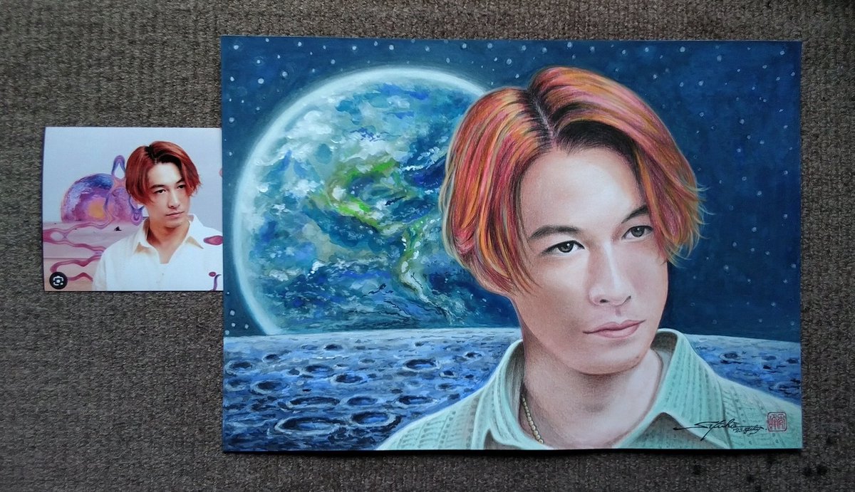 おはようございます(*^^*) ■「ディーン・フジオカさん」完成‼️ ✻レアなヘアカラーの彼は初めて描きました。 背景もヘアーに合わせて神秘的、幻想的に仕上げました。 皆様のご意見、感想等お待ちしております🙏 今日も宜しくお願い致します🙏 #アナログ画 #ディーン・フジオカ