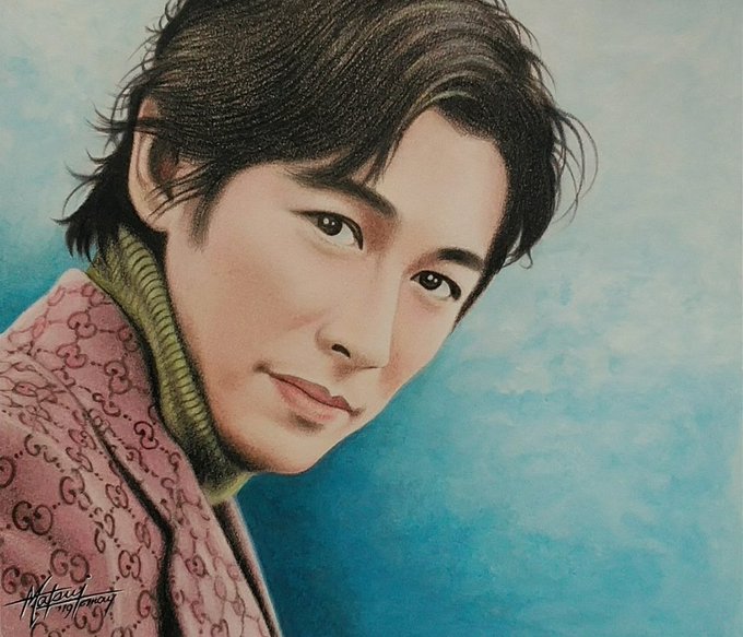 おはようございます😊 プライベートな絵を描いている為「ディーン・フジオカさん」の『過去絵の旅ツァー』に皆さんをご案内しております🙇♂️ 3日目、添乗員は私、秀峰です。 今週も笑顔で…宜しくお願い致します🙏 ※コロナ感染防止万全に…!! №③(’16.12 色鉛筆画) #ディーン・フジオカ