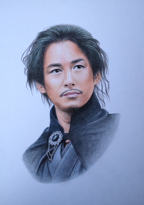 おはようございます(*^^*) ■「ディーン・フジオカさん」完成‼️ @ArrtxJPの色鉛筆で描きました。 背景は透明水彩絵の具で…。 襟止めのブローチ、まぁまぁかな🤔 皆様のご感想、コメント等をお待ちしております🙇♂️ 今日もよろしくお願い致します🙏 #らんまん #ディーン・フジオカ