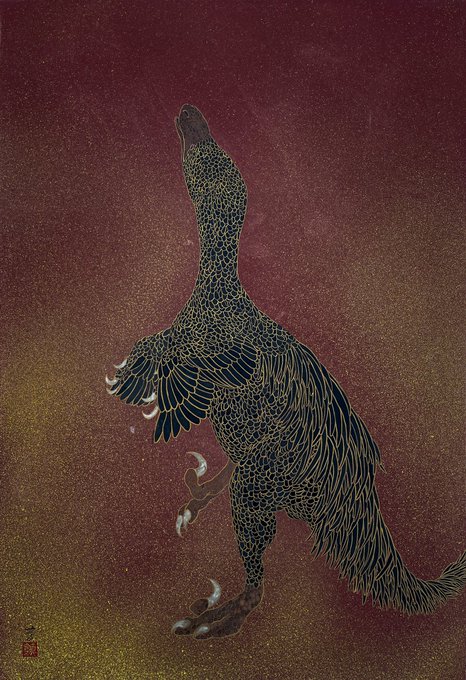 #DeinonychusDay なのでデイノニクスを描きました!!ヴェロキラプトルと並ぶ代表的なドロマエオサウルス類が彼等。 本種から得られた結果によって「恐竜温血説」が唱えられ、それまでの恐竜のイメージが変わったそうですねぇ。 #デイノニクス #獣脚類