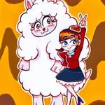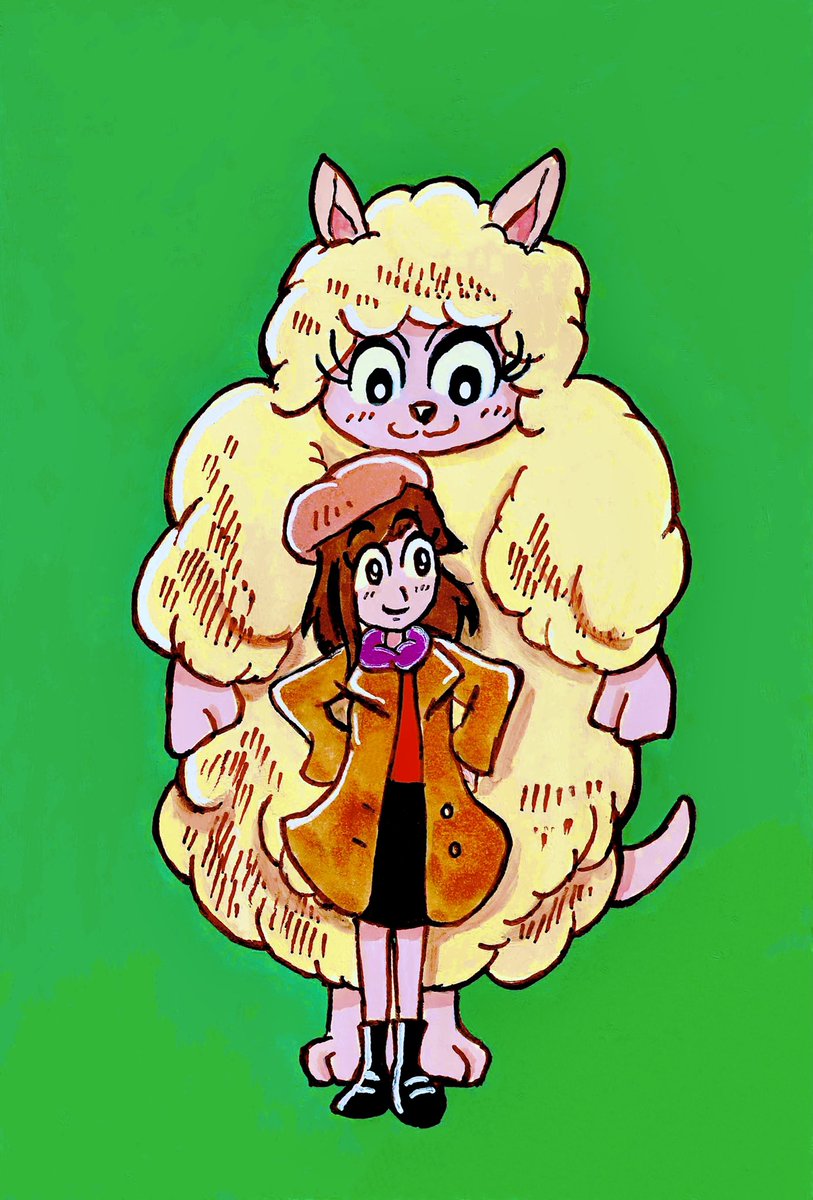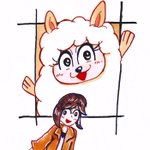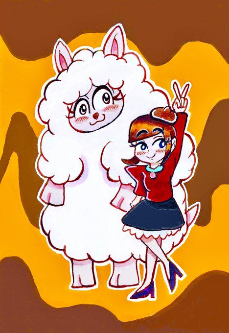 【#創作イラスト】 女の子とデカひつじ ピースっ✌️ #デカひつじ #イラスト #illustration #アナログイラスト #創作キャラ #ひつじ #drawing #コピック #アクリル #創作クラスタさんと繋がりたい #絵描きさんと繋がりたい #イラスト好きと繋がりたい