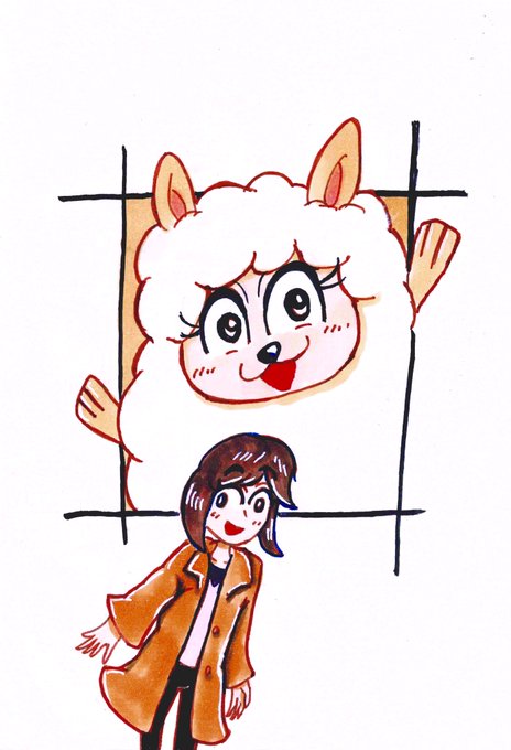 【#創作イラスト】 上からくるぞ まめちゃんとデカひつじ #デカひつじ #ゆかいなまめちゃん #イラスト #illustration #アナログイラスト #創作キャラ #クラフト紙 #drawing #創作クラスタさんと繋がりたい #絵描きさんと繋がりたい #イラスト好きと繋がりたい