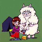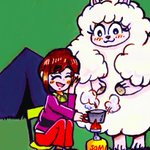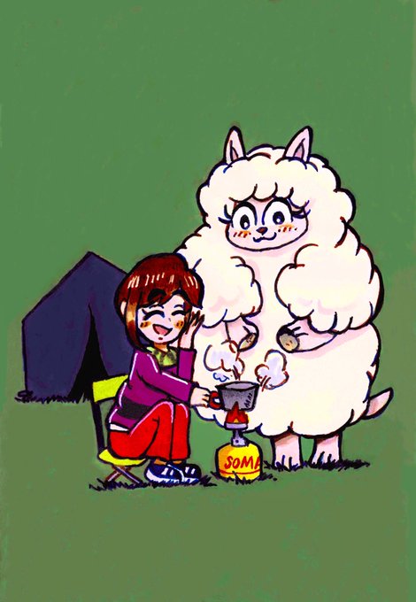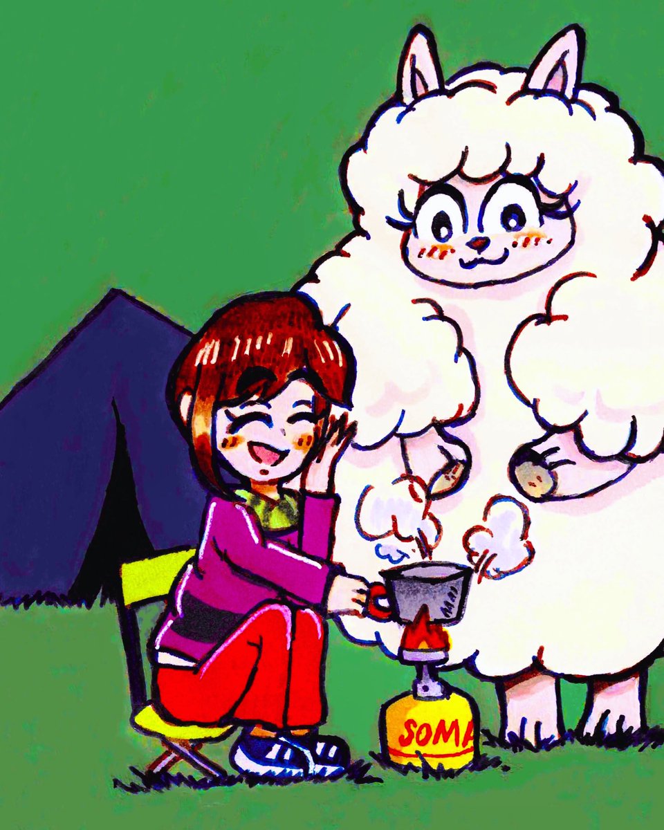 【#創作イラスト】 『キャンプに来てるよ デカひつじとおんなのこ』 #デカひつじ #イラスト #illustration #アナログイラスト #創作キャラ #ひつじ #drawing #コピック #アクリル #キャンプ #創作クラスタさんと繋がりたい #絵描きさんと繋がりたい #イラスト好きと繋がりたい