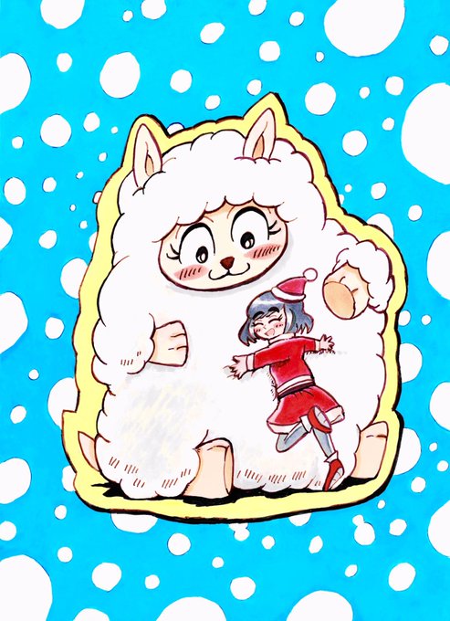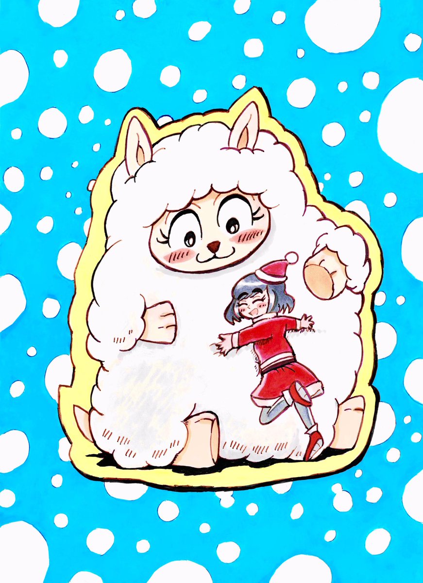 【#美女サンタ '22】 🤶美女サンタ、デカひつじに会う🐑 #デカひつじ #イラスト #illustration #アナログイラスト #christmas #創作イラスト #コピック #アクリルガッシュ #drawing #クリスマスイラスト #創作クラスタさんと繋がりたい #イラスト好きと繋がりたい #絵描きさんと繋がりたい