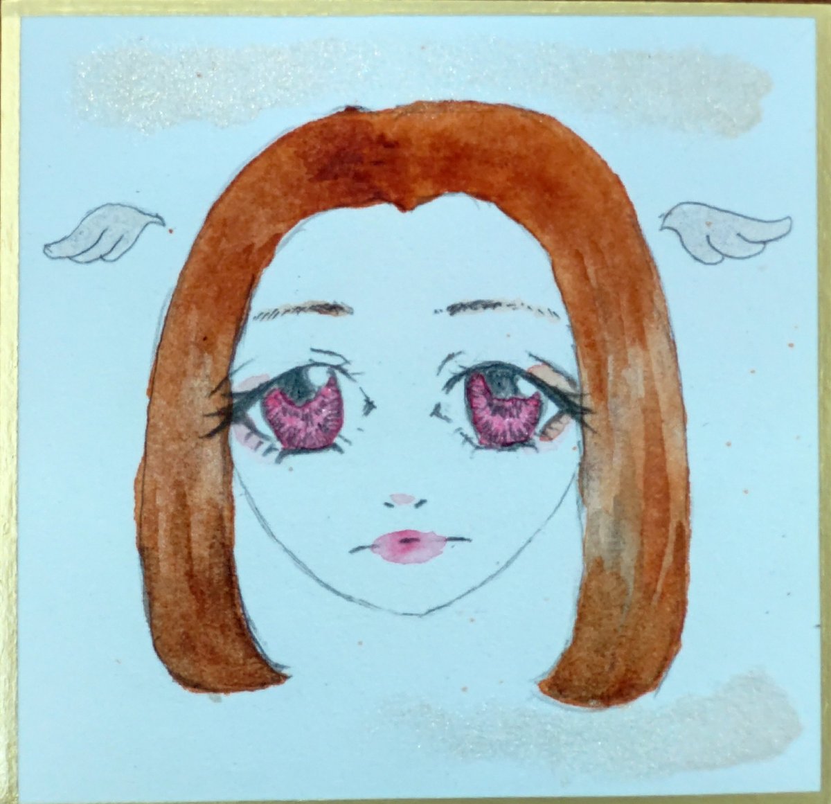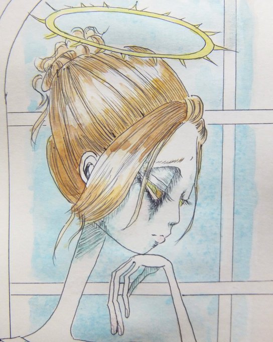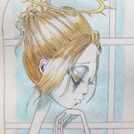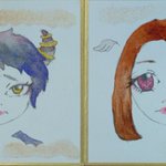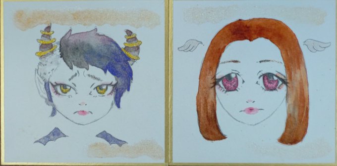 文字を入れる前まで完成。気に入ってもらえるか心配😨 #art #illustration #pencil #marker #watercollar #watercollarart #絵 #イラスト #水彩画 #ペン画 #devil #angel #悪魔 #天使 #似顔絵 #誕生日プレゼント #birthday #birthdaypresent #誕生日 #デカ目ちゃん?とは違うかな?