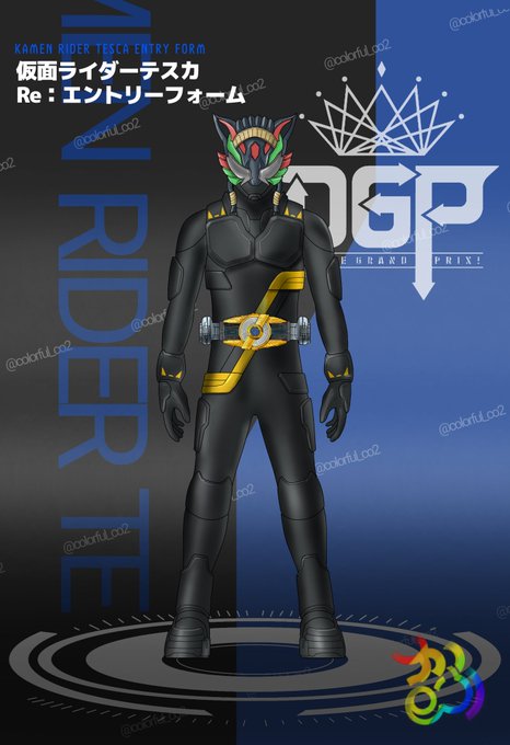 仮面ライダーテスカ 【Re:エントリーフォーム】 『Re:ENTRY』 もとはメキシコのジャガーマスクのデザ神 どっちかというと思想は悪寄りです #仮面ライダーギーツ #カラフル画集 #デザイアエントリー