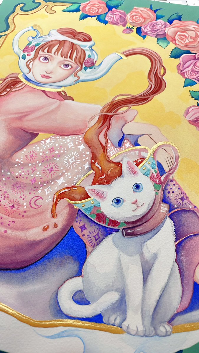 明日から、原宿のデザインフェスタギャラリーにてグループ展が始まります🌷 お近くをお通りの際は是非、ご高覧いただければ幸いです🫖✨ #イラストレーション #イラスト #アナログイラスト #透明水彩 #水彩画 #デザインフェスタギャラリー原宿 #展示 #絵描きさんと繋がたい #illust #illustration