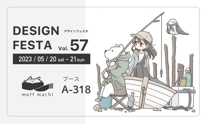 【出展情報】 #デザインフェスタ57 日時:5/20(土)-21(日) 場所:東京ビッグサイト ブース:A-318 今週末開催のデザフェスに出展します🐱 コミティアに引き続き新刊やグッズを展開しますのでよろしくおねがいします〜🐾