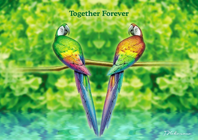 #2021年の自信作 #アドビ #デザイン部門 Adobe コンテストへの応募作品です 「 Together Forever 」 インコのカップルです #絵描きさんと繋がりたい #イラスト好きさんと繋がりたい