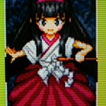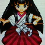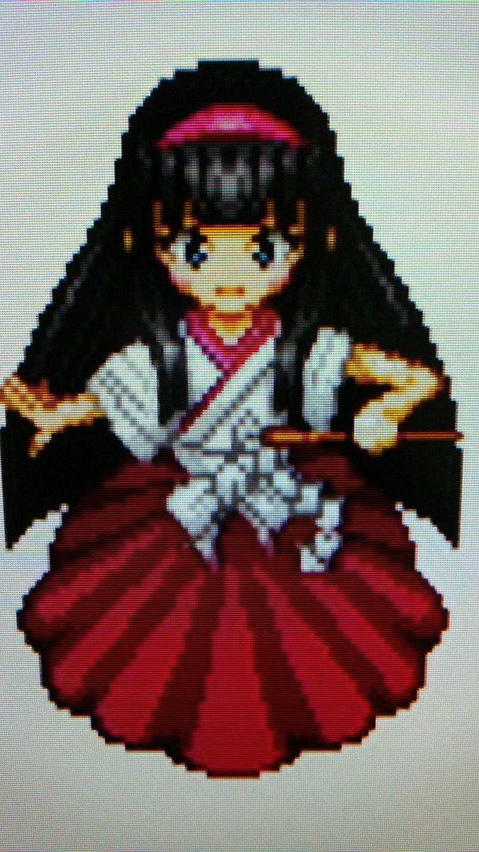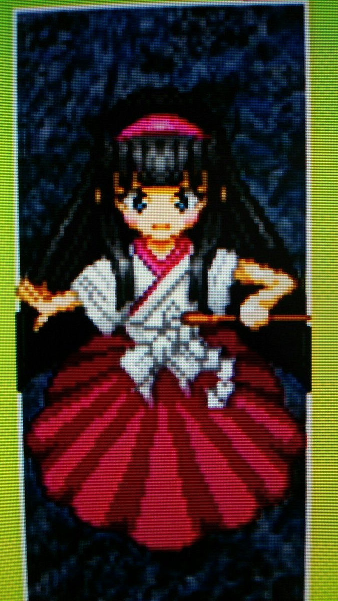 #ハーティーパイロッツ ボス3人目。 長い黒髪の巫女さん。 2段階目は巫女服が破けます。 袴が破けてまるでミニスカ? これは…○に変わってせっかんモードに… #デザエモン #シューティングゲーム #STG #ドット絵 #pixelart